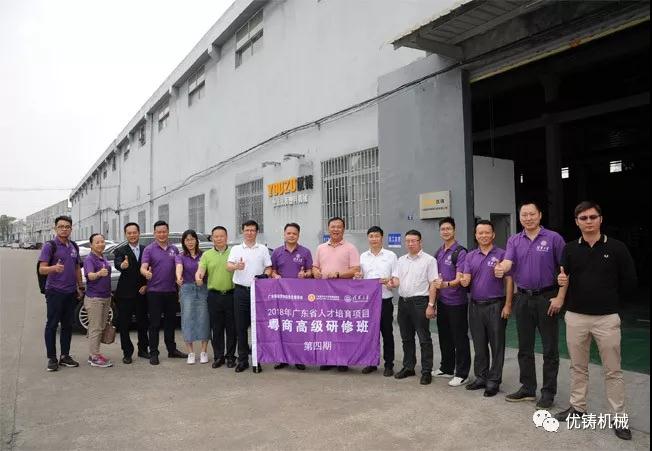 2018年10月24日上午,粵商高級研修班成員一行,在優(yōu)鑄公司董事長洪浩坤(圖一:左邊第8位)、常務副總洪澤宏(圖一:左邊第3位)的陪同下蒞臨優(yōu)鑄第一生產(chǎn)基地、第二生產(chǎn)基地參觀、學習。