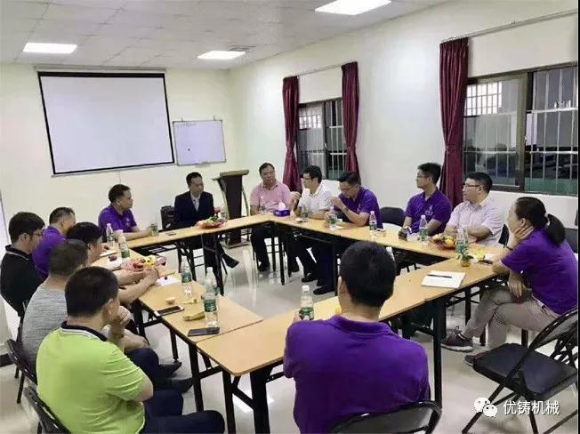 參觀完畢,隨后一行人于第二生產(chǎn)基地培訓室進行深入交流。會中,研修班各成員輪流發(fā)表看法,對優(yōu)鑄近年來迅速發(fā)展以及取得的成果給予充分肯定,同時對優(yōu)鑄未來發(fā)展給出很中肯、很有意義的建議。