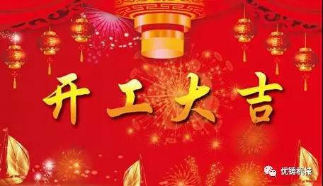 優(yōu)鑄機械今天正式開工,將為各位業(yè)界朋友繼續(xù)提供優(yōu)質(zhì)的產(chǎn)品和服務(wù)!在新春之際,公司全體同仁恭祝大家生意興隆、萬事如意、家庭幸福!