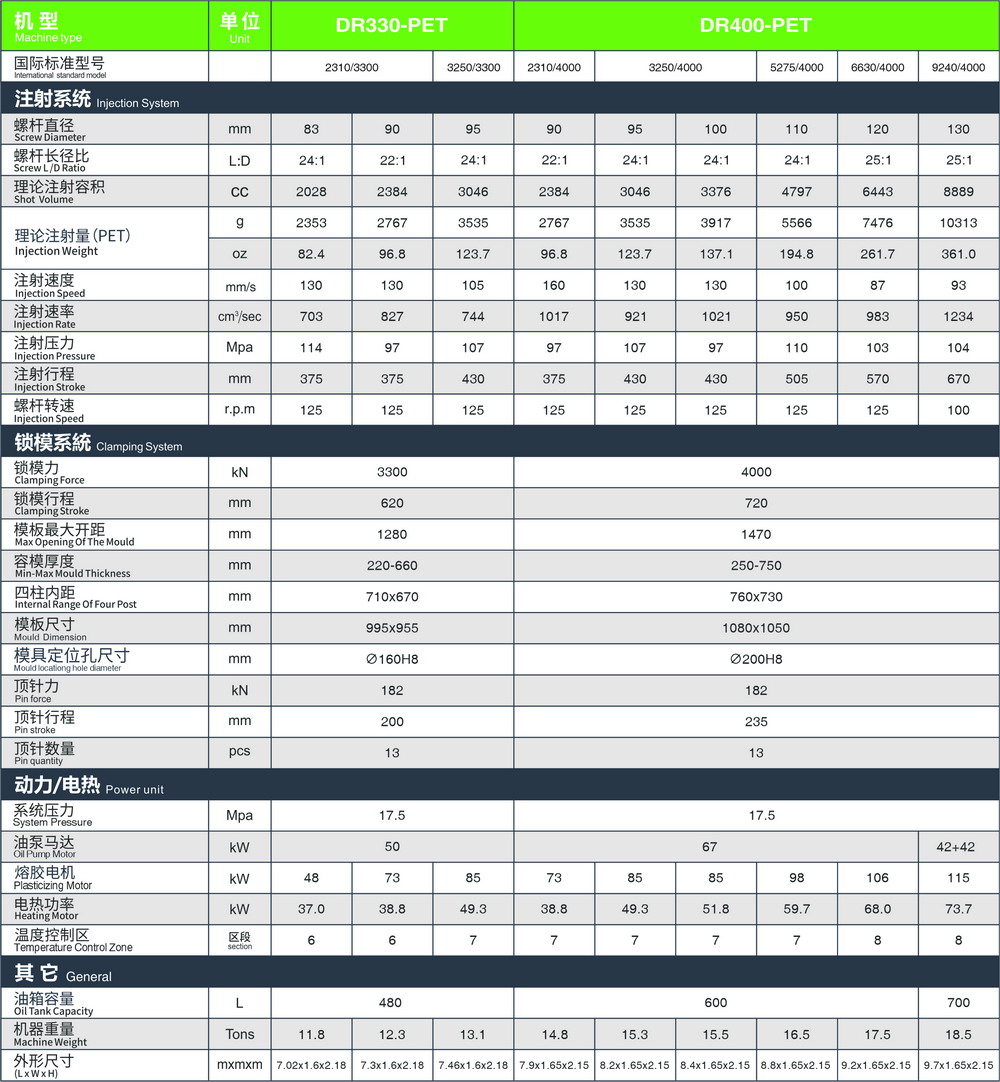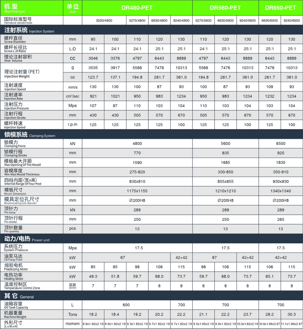 5、動力配置加大,提高電機過載能力和油泵排量輸出,達(dá)到真正意義上的高速PET專用機。